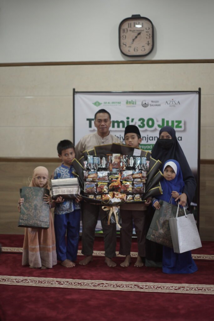 Suasana haru mulai terasa menjelang akhir kegiatan. Ketika tasmi’ 30 juz berhasil dituntaskan, suasana Masjid Salamah seketika pecah dalam kehangatan dan rasa syukur. Abiyyu dan keluarga saling berpelukan, larut dalam kebahagiaan dan kebanggaan yang sulit diungkapkan dengan kata-kata. Para tamu dan jamaah yang hadir pun tak sedikit yang meneteskan air mata, semuanya menyatu dalam cinta dan kemuliaan Al-Qur’an.